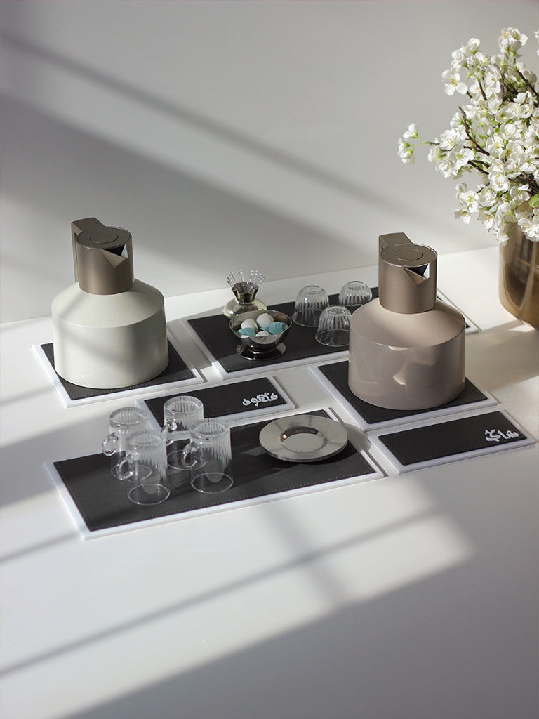Introducing our Acrylic and Leather Set with a perfect harmony of modern flair and classic elegance, featuring 2 Rectangle Trays (20x40cm), 2 Square Trays (20x20cm), and 2 Small Trays (20x10cm). The rectangular and square trays boast a crystal-clear acrylic base, offering a sleek and modern foundation for a variety of uses. Adding a touch of luxury and texture to this set, each tray is accentuated by leather.