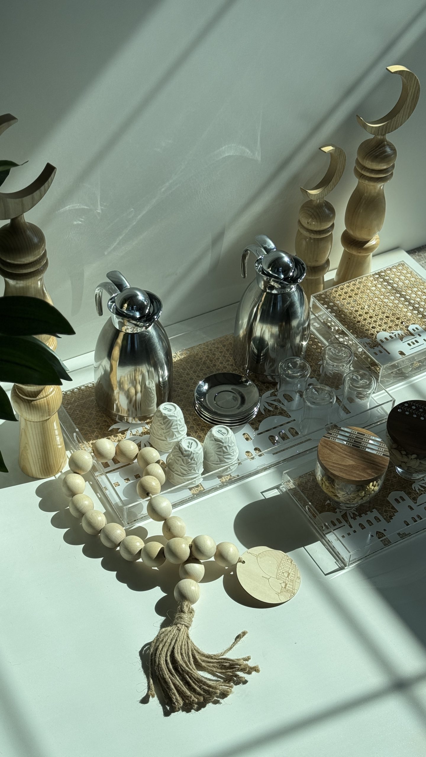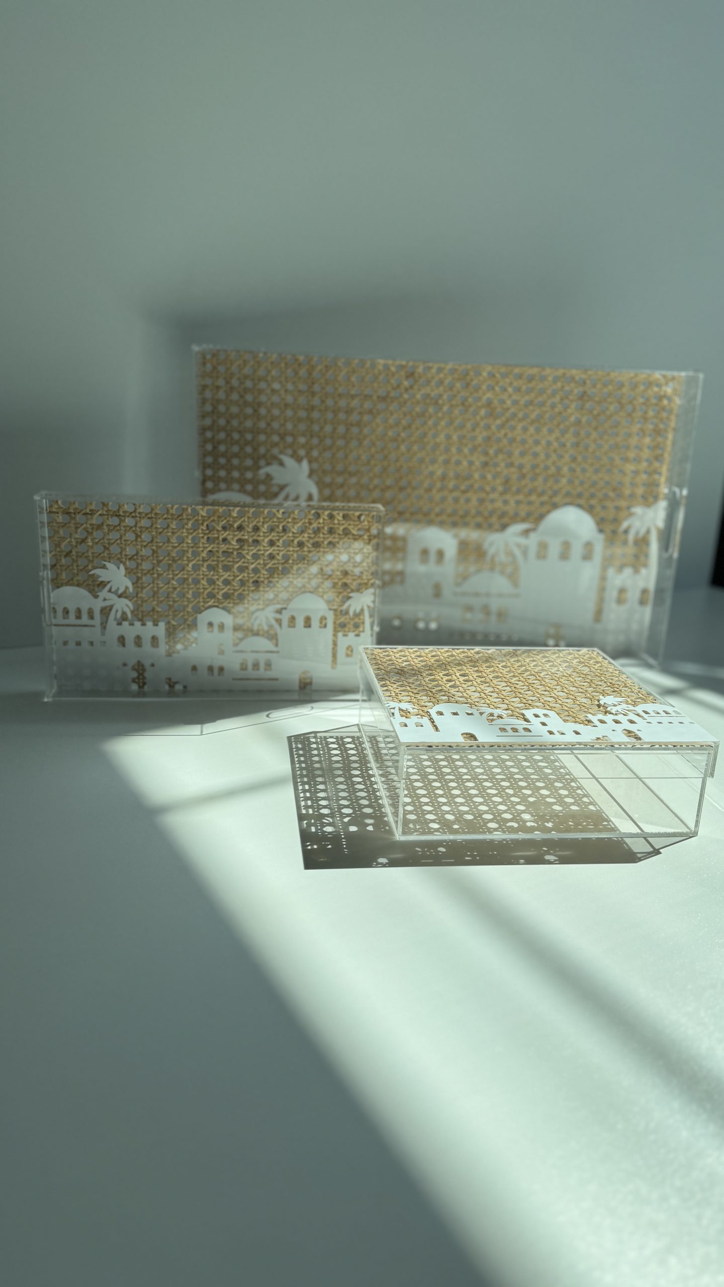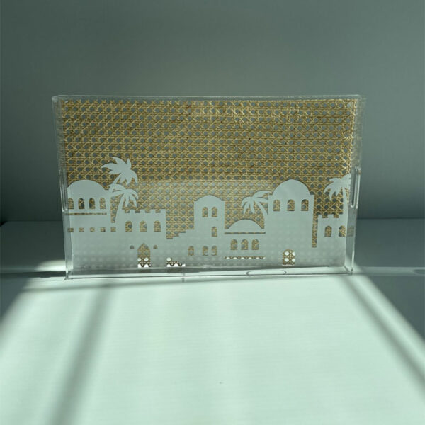 The bamboo acrylic tray seamlessly combines the warmth of bamboo with the modern touch of acrylic, creating a stylish and functional accessory. Its eco-friendly bamboo base provides a natural aesthetic, while the clear acrylic sides add a contemporary flair. Perfect for serving or organizing, this tray effortlessly blends form and function in any setting. Tray size is 30x20cm.