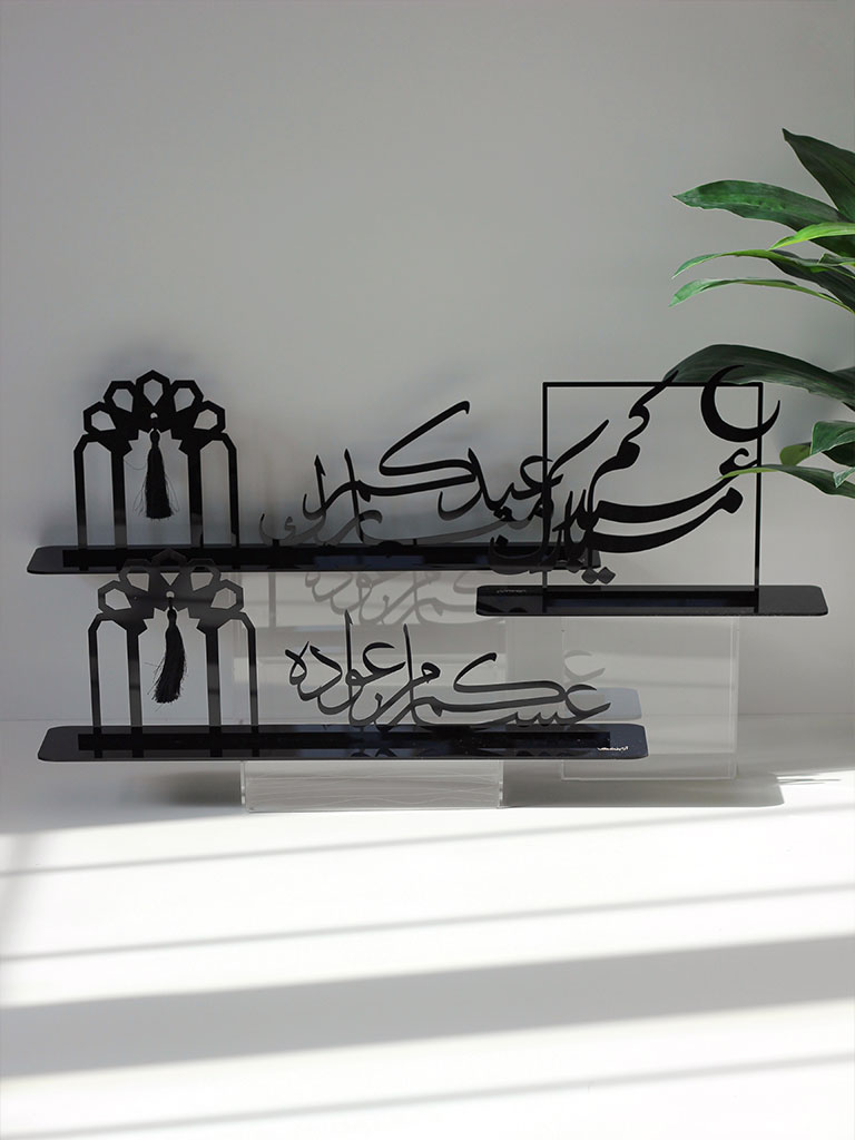 A sleek and elegant addition to your festive decor, carefully designed with dimensions of 30x25cm. Crafted from high-quality acrylic, this stand seamlessly blends modern aesthetics with the traditional joy of Eid. Elevate your Eid celebrations with the Acrylic Eid Mubarak Stand – a chic and contemporary piece that captures the essence of the occasion in a stylish and compact form.