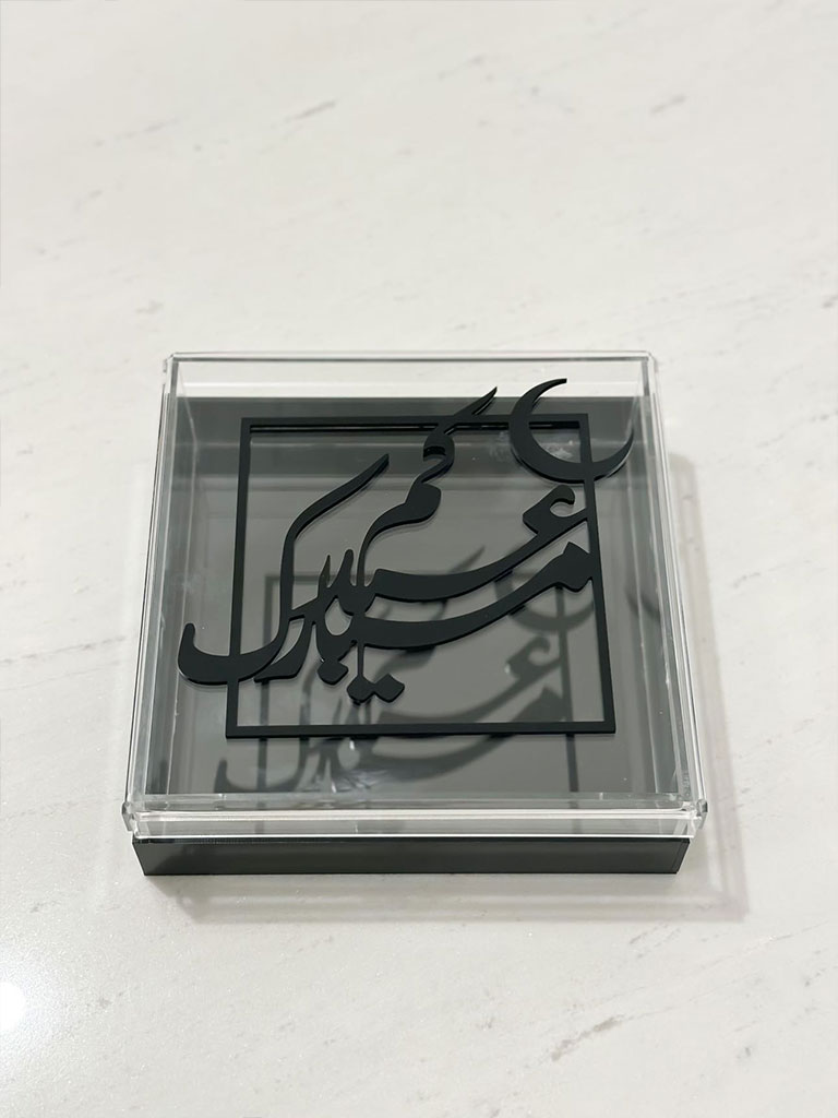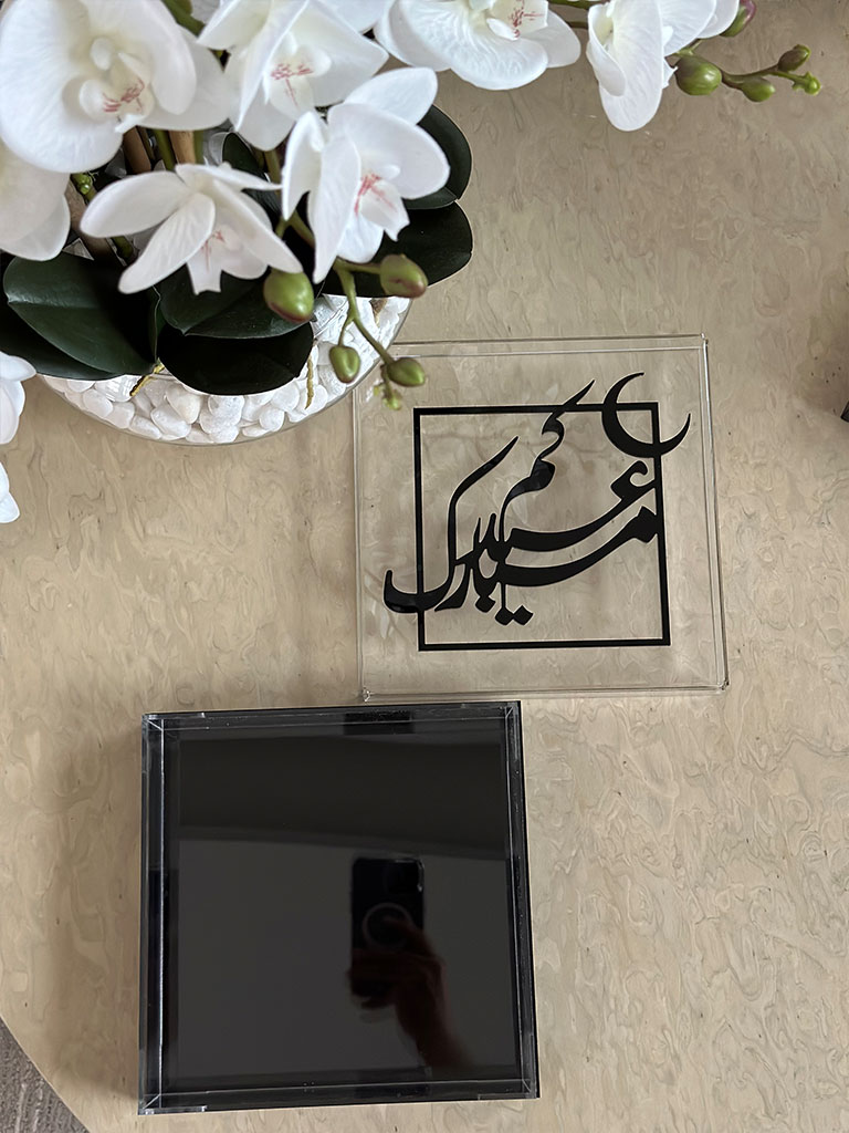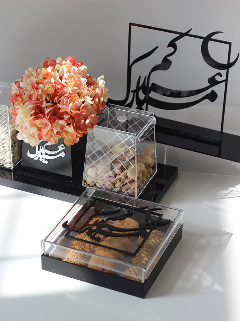 A delightful and charming container designed to add sweetness to your festive celebrations, thoughtfully crafted in a compact size of 20x20cm. This elegantly decorated box becomes a perfect vessel for sharing and indulging in delectable treats during the joyous occasion of Eid.