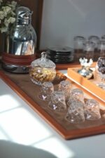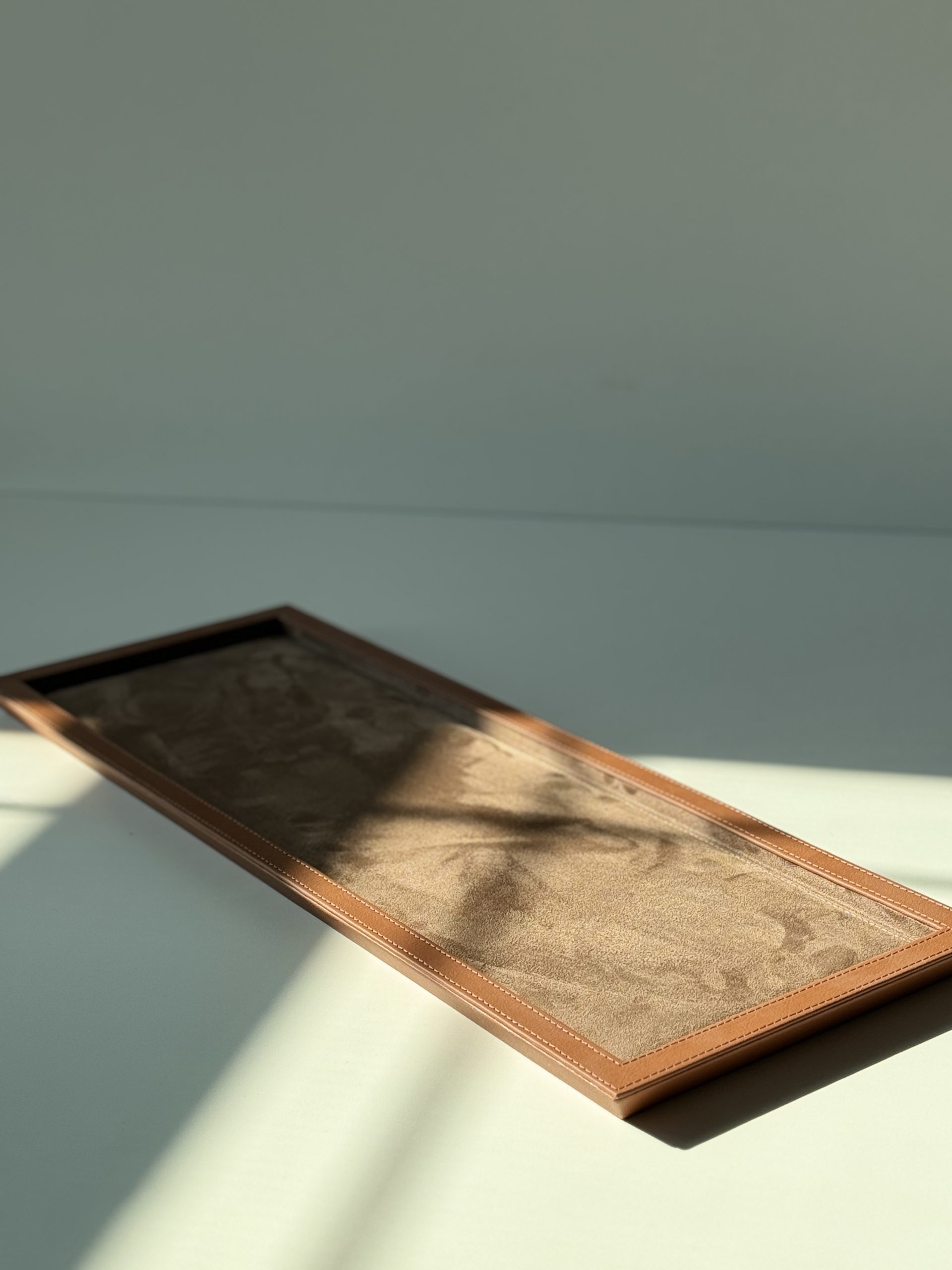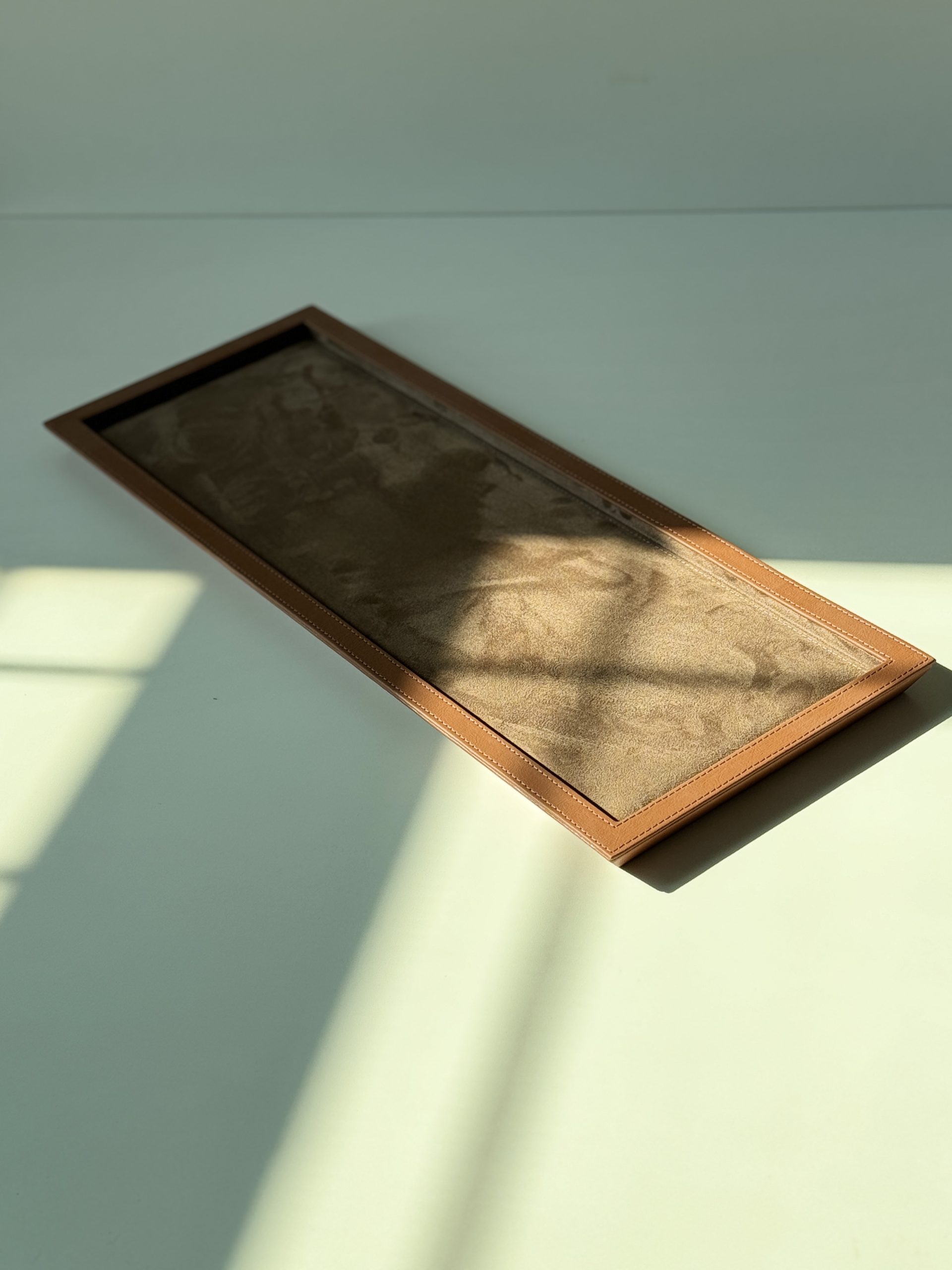 This creative design of leather trays is crafted with precision and elegance, these trays provide a sleek and organized platform for your favorite beverages or decoration. The dimensions of this tray is 65x25cm.