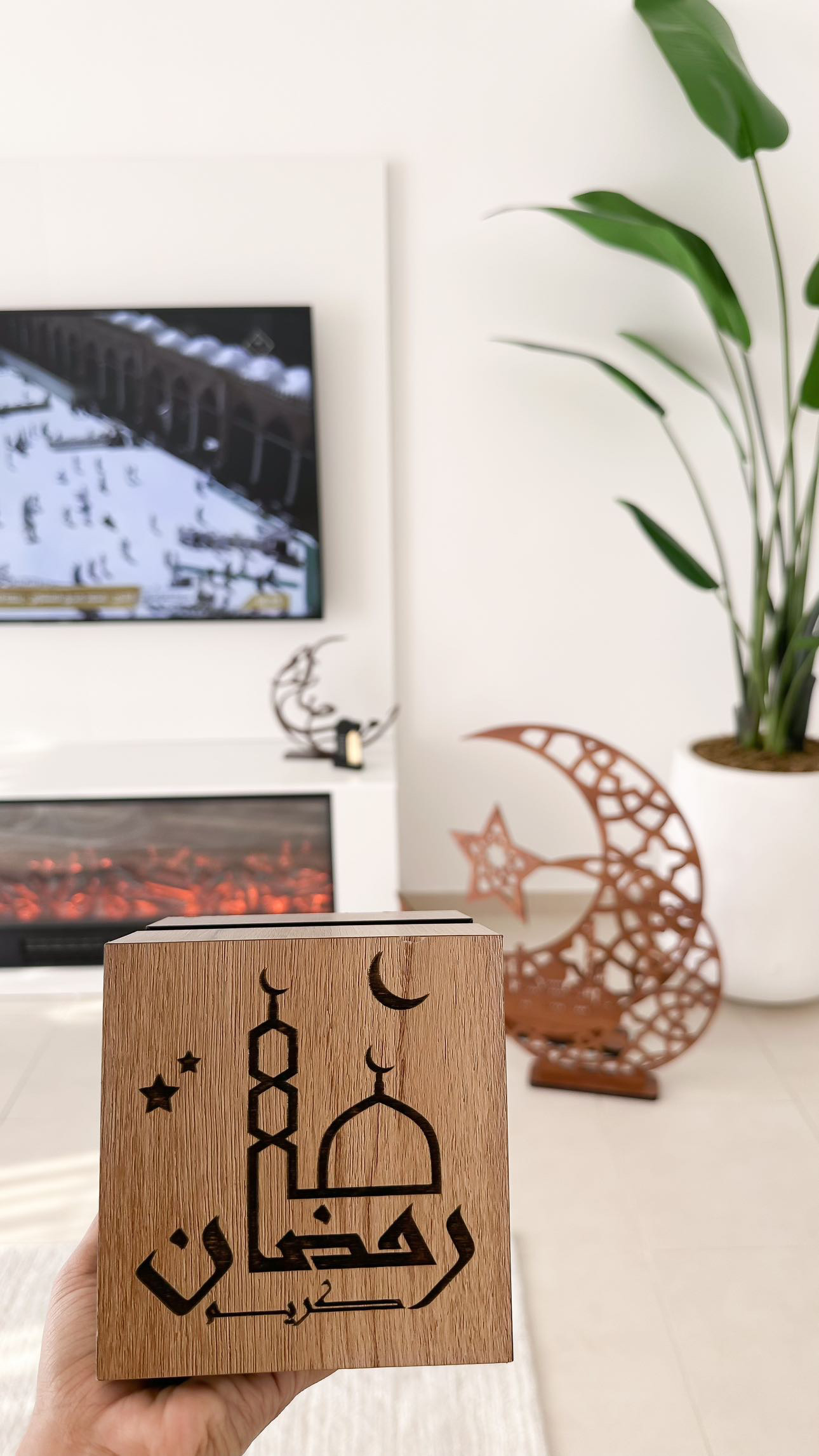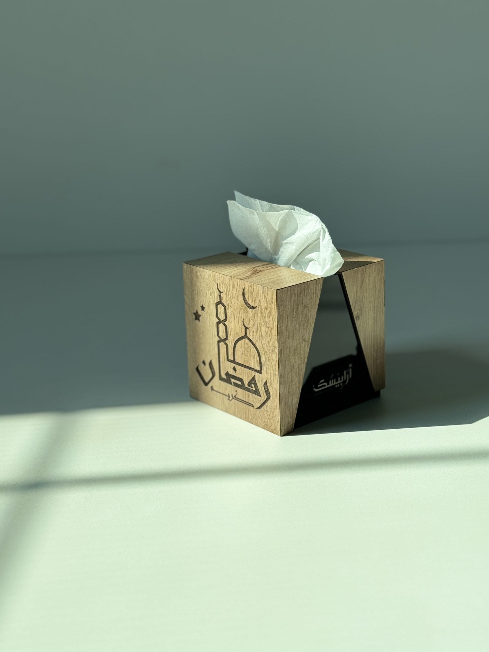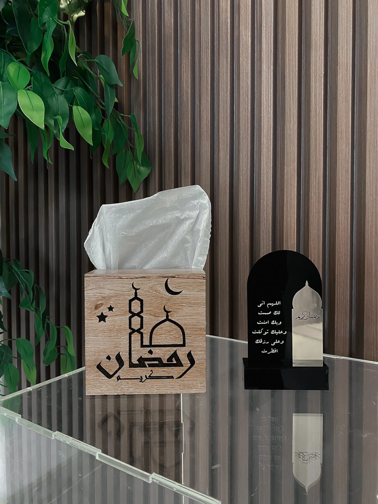 A refined and symbolic storage solution that seamlessly blends cultural significance with modern design. Crafted with meticulous detail, this Tissue Box becomes a meaningful addition to your decor, offering both style and functionality. The crisp black acrylic with Wood details construction of the Ramadan Tissue Box exudes simplicity and sophistication.