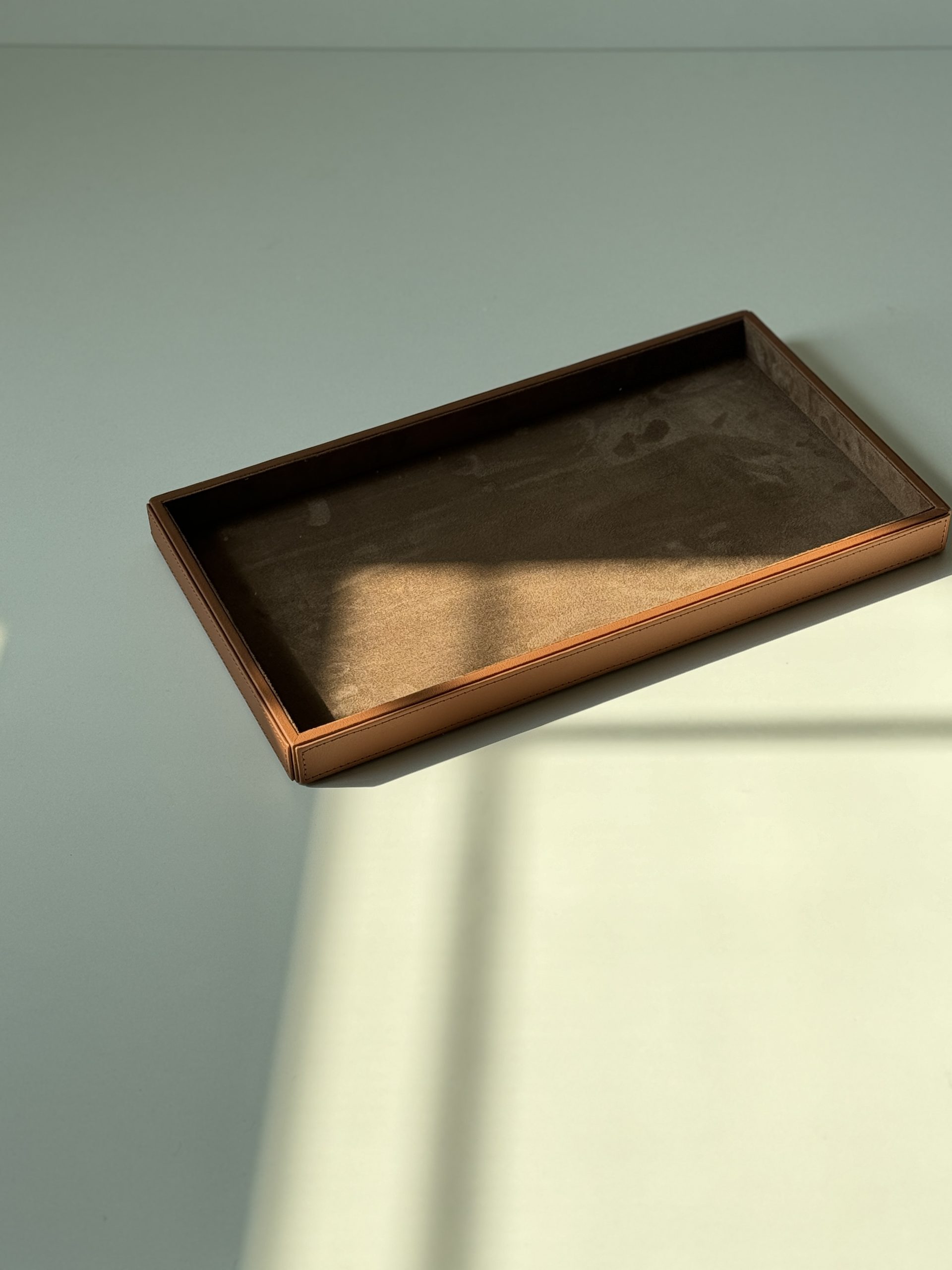 This creative design of leather trays is crafted with precision and elegance, these trays provide a sleek and organized platform for your favorite beverages or decoration. The dimensions of this tray is 45x25cm.