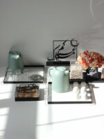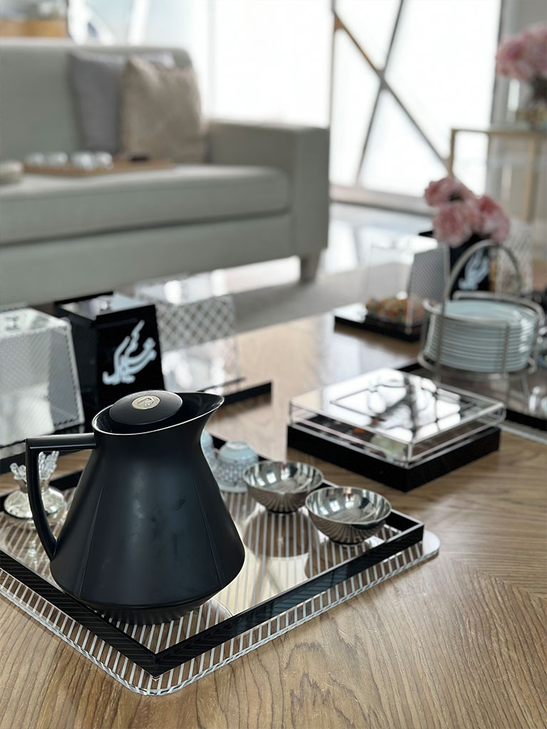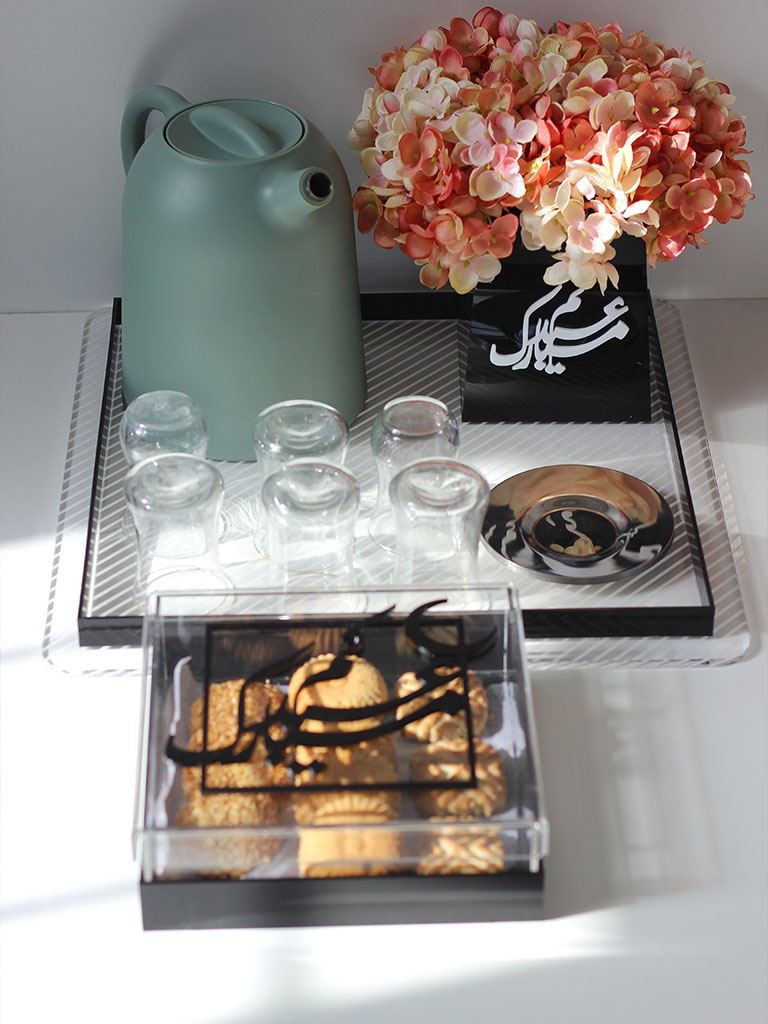 A contemporary and stylish addition to your decor, meticulously designed with a generous size of 55x55cm. Crafted with precision, this square tray boasts a modern aesthetic with its crisp lines and bold black border. The transparent acrylic surface of the tray exudes sophistication, while the intricate lines and black border add a touch of elegance and visual interest.