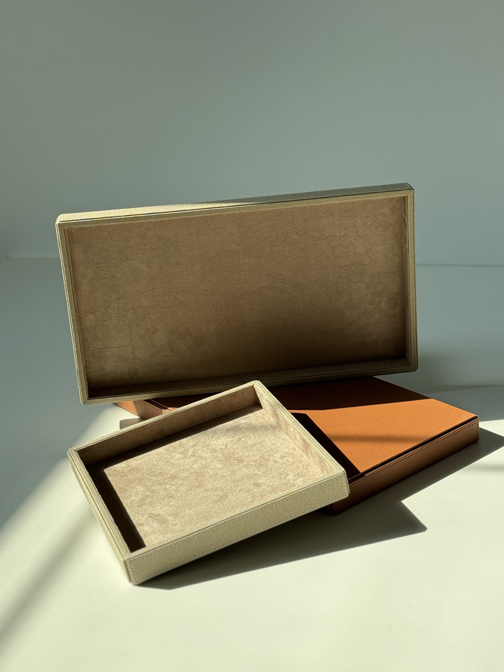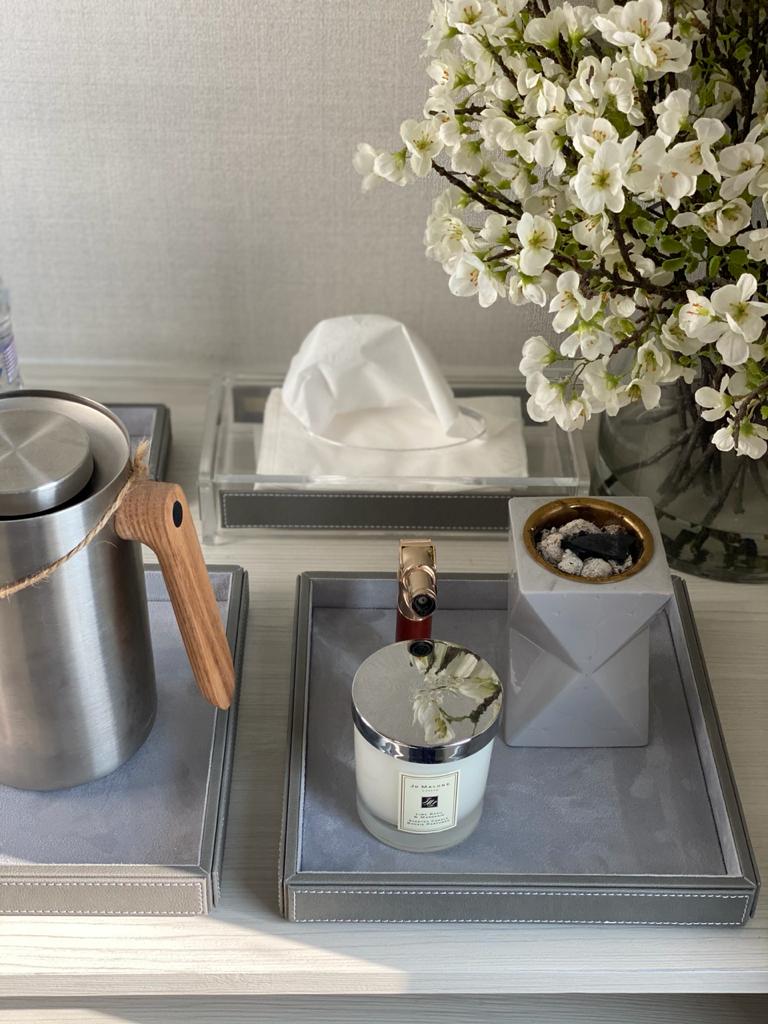 This creative design of leather trays is crafted with precision and elegance, these trays provide a sleek and organized platform for your favorite beverages or decoration. The dimensions of this tray is 25x25cm.