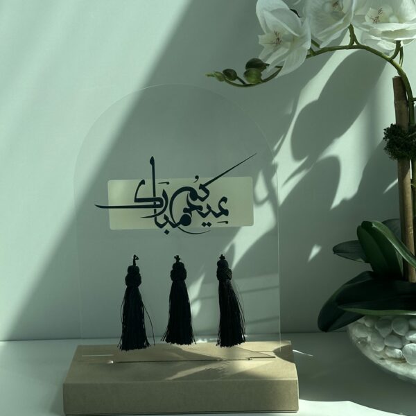 Eid Sweet box stand comes with a leather tray and can be used for tea and coffee, a stand with an eid print for sweets inside.