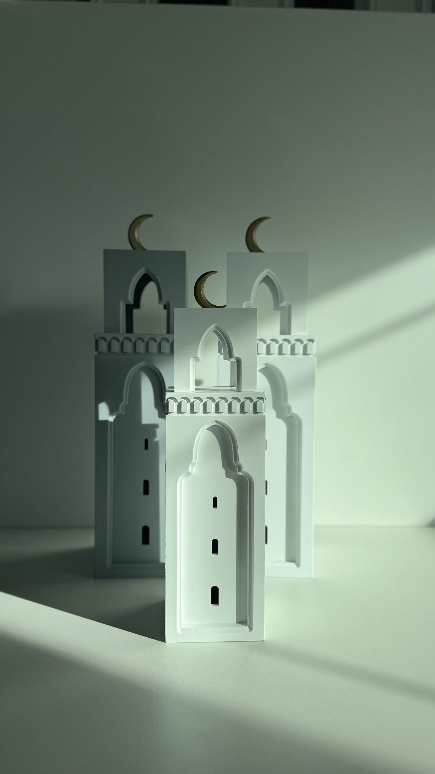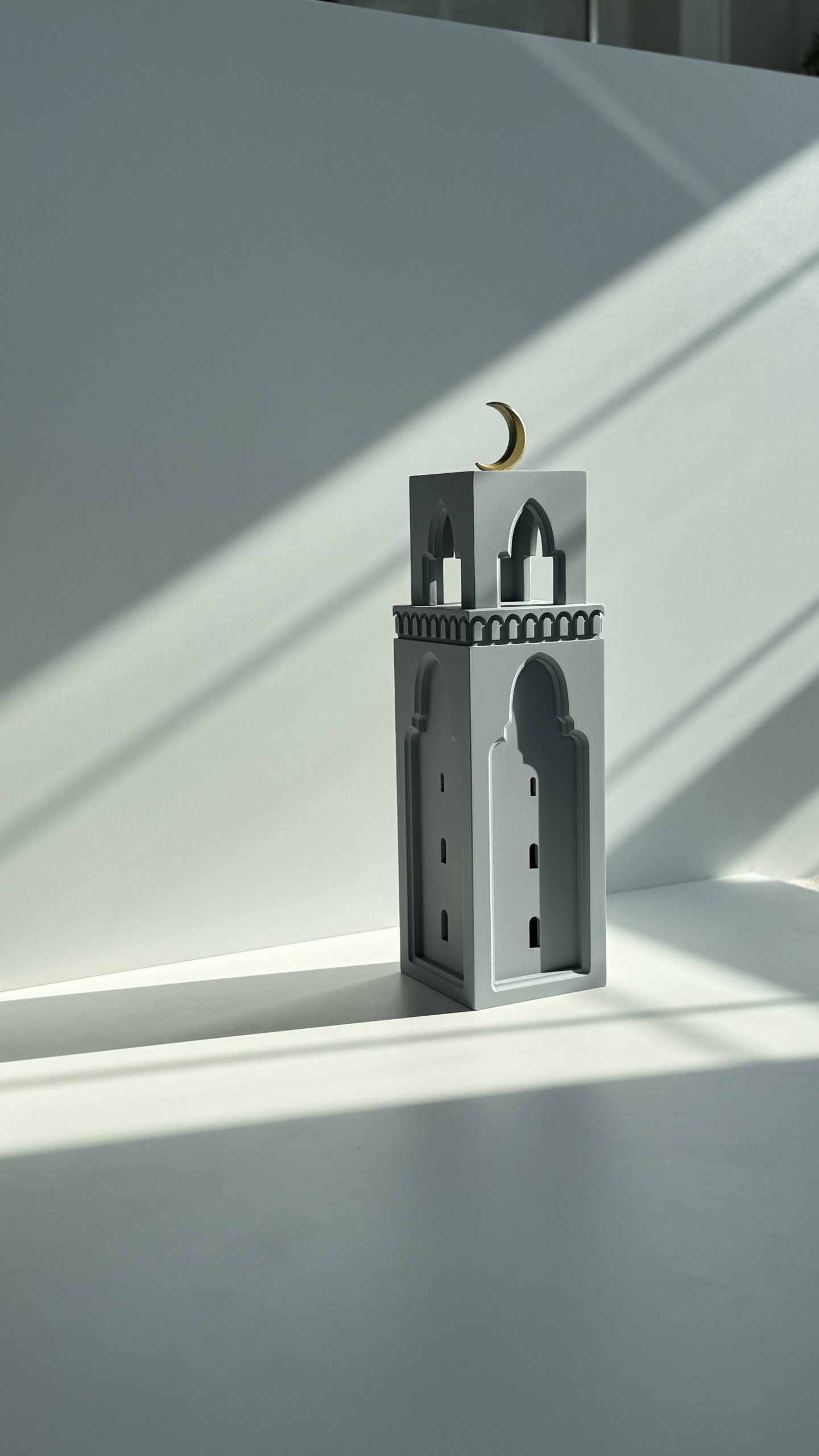A refined and symbolic storage solution that seamlessly blends cultural significance with modern design. Crafted with meticulous detail, this manarah stand becomes a meaningful addition to your decor, offering both style and functionality. The wooden details construction of the stand exudes simplicity and sophistication. Its dimensions are 15x15cm with a height of 60cm.